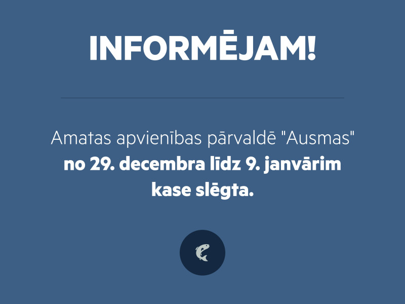 Cēsu novada Amatas apvienības pārvaldē "Ausmas" no 29. decembra līdz 9. janvārim kase slēgta.