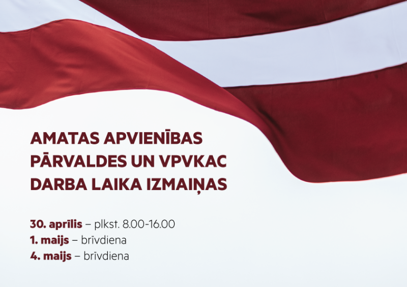 Informējam, ka svētku laikā mainīts Amatas apvienības pārvaldes un Valsts un pašvaldību vienoto klientu apkalpošanas centru (VPVKAC) darba laiks: