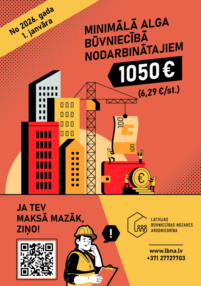 Latvijas Būvniecības nozares arodbiedrība (LBNA) informē, ka būvniecības nozarē joprojām ir spēkā vispārsaistošā būvniecības nozares ģenerālvienošanās, kas nosaka minimālās darba samaksas prasības nozarē nodarbinātajiem.