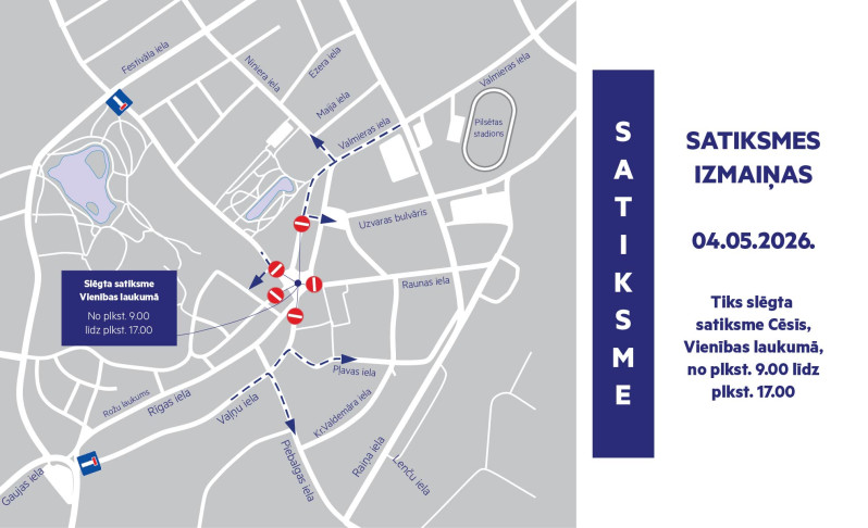 Saistībā ar LVM MTB un Gravel maratona 1. posms Cēsis – Valmiera, kā arī Latvijas Republikas Neatkarības atjaunošanas dienas svinīgo pasākumu norisi Cēsu pilsētā 4. maijā laikā no plkst. 9.00 līdz plkst. 17.00 būs slēgta satiksme Vienības laukumā.