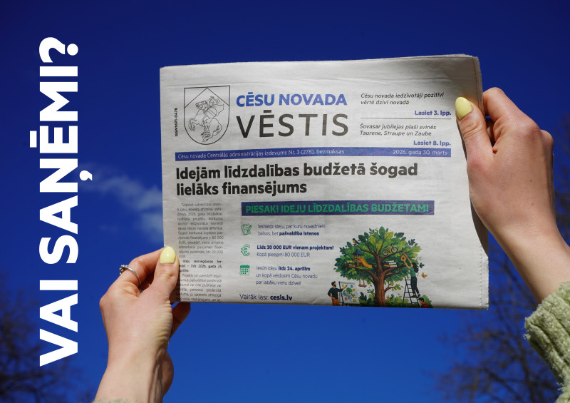 Atgādinām, ka "Cēsu Novada Vēstis" pieejamas arī digitālā formātā ŠEIT.