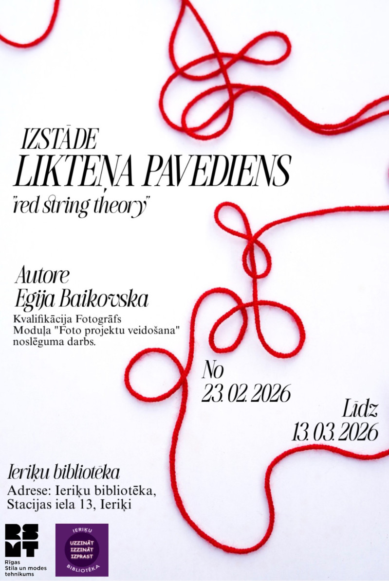 No 23. februāra līdz 13. martam Ieriķu stacijas telpās apskatāma jaunās fotogrāfes Egijas Baikovskas pirmā personālizstāde "Likteņa pavediens".