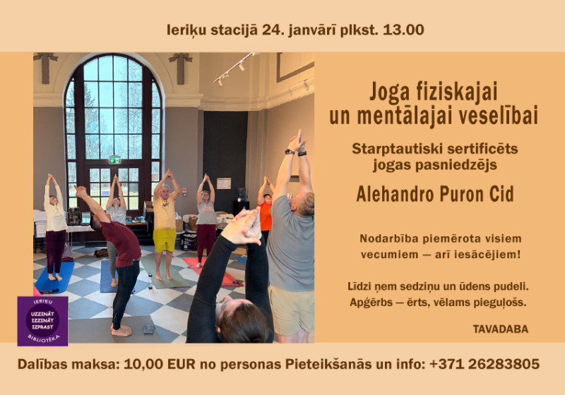 Sestdien, 24. janvārī, plkst. 13.00 piedzīvo mieru, līdzsvaru un enerģiju nodarbībā "Joga fiziskajai un mentālajai veselībai".