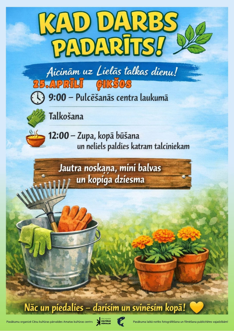 Amatas Kultūras centrs aicina uz Lielās talkas dienu 25. aprīlī Ģikšos!