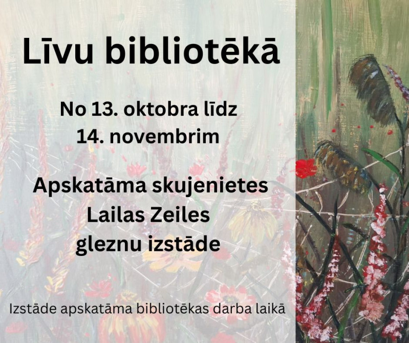 No 13. oktobra līdz 14. novembrim Līvu bibliotēkā apskatāma skujenietes Lailas Zeiles gleznu izstāde.