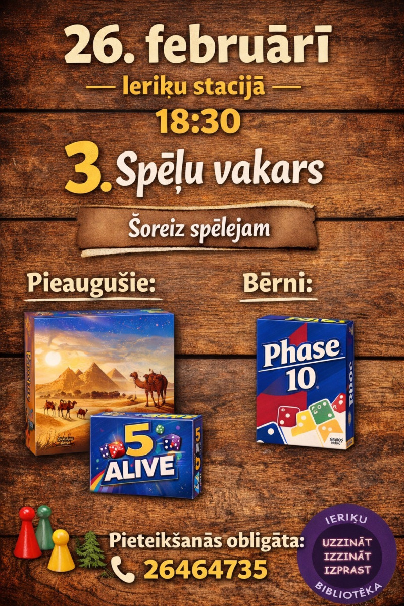 Ceturtdien, 26. februārī, plkst. 18.30 Ieriķu stacijā norisināsies jau trešais spēļu vakars.
