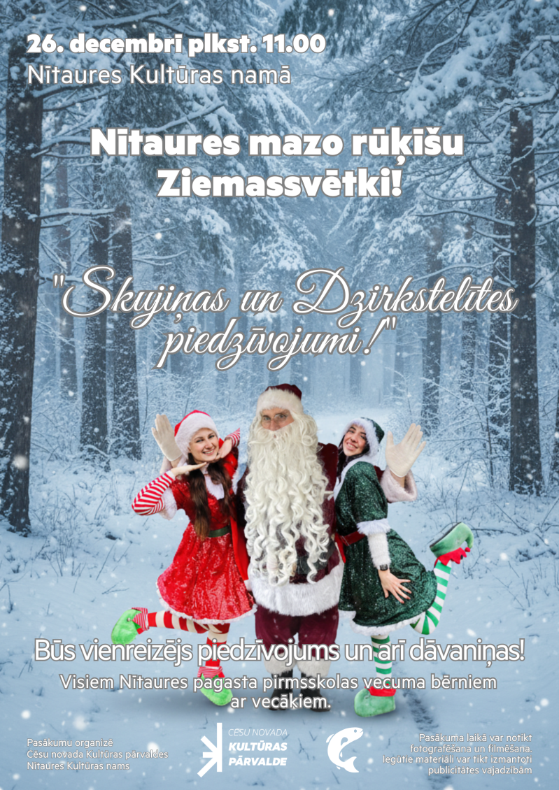 Piektdien, 26. decembrī, plkst. 11.00 Nītaures Kultūras nams aicina uz Ziemassvētku piedzīvojumu Nītaures mazajiem rūķīšiem.